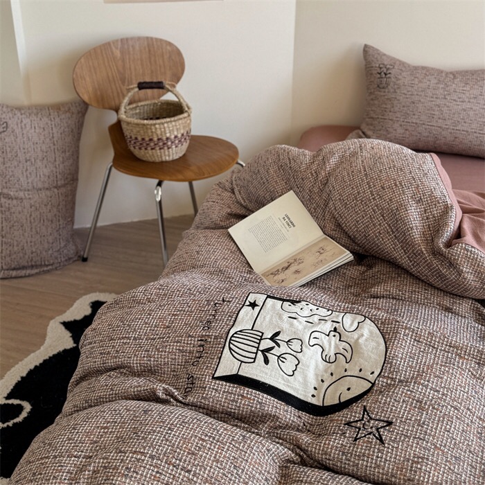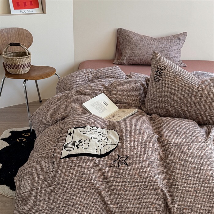 The product is 4pcs bedding set. It’s made of pure cotton fabric by default. We support doing ODM/OEM. We can provide fabrics both solid colors and printing(from 75-150gsm)/the weight of fillings ranges from 150-500gsm.Both of which can be customized according to customer’s needs.