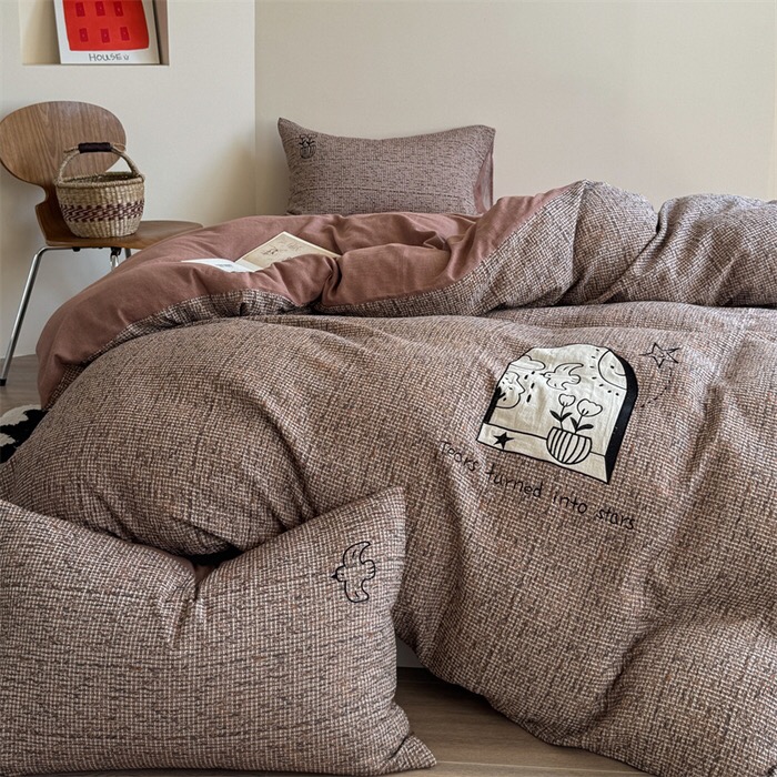 100% cotton jacquard home hotel textile brown comforter cover with 2 high-end pillowcases coverlets bedding set manufacture
