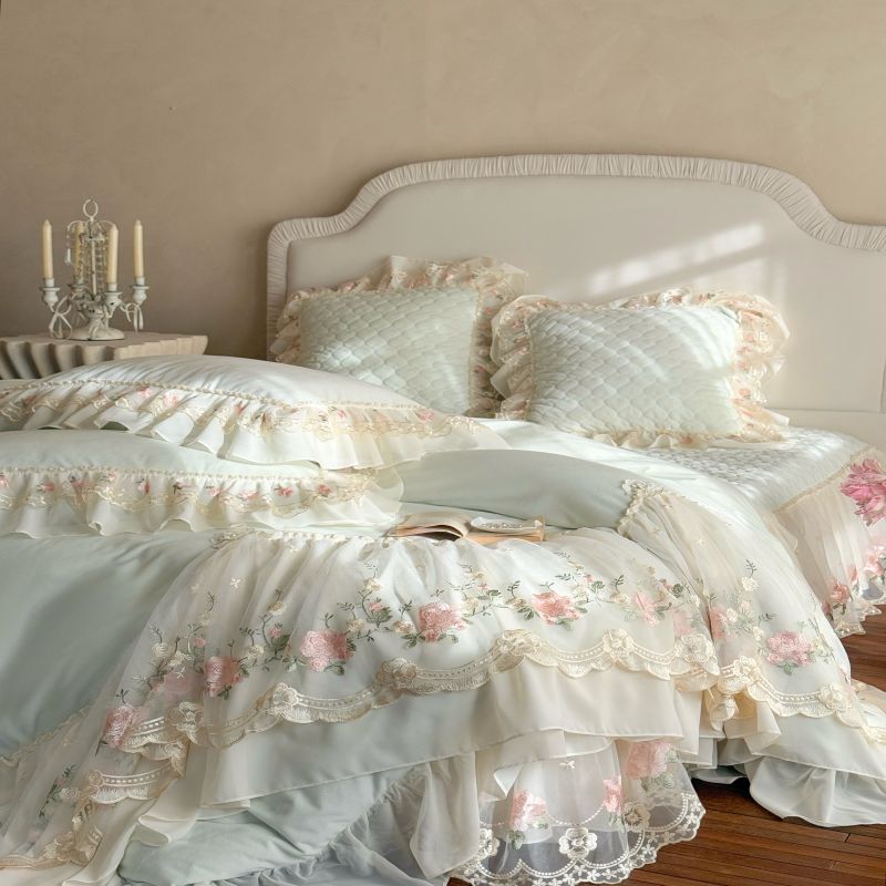 100% Long Staple Cotton Home Textile Lace Embroidery Quilt Duvet Comforter Cover Bed Sheet White Bedding Set