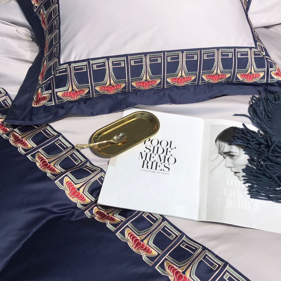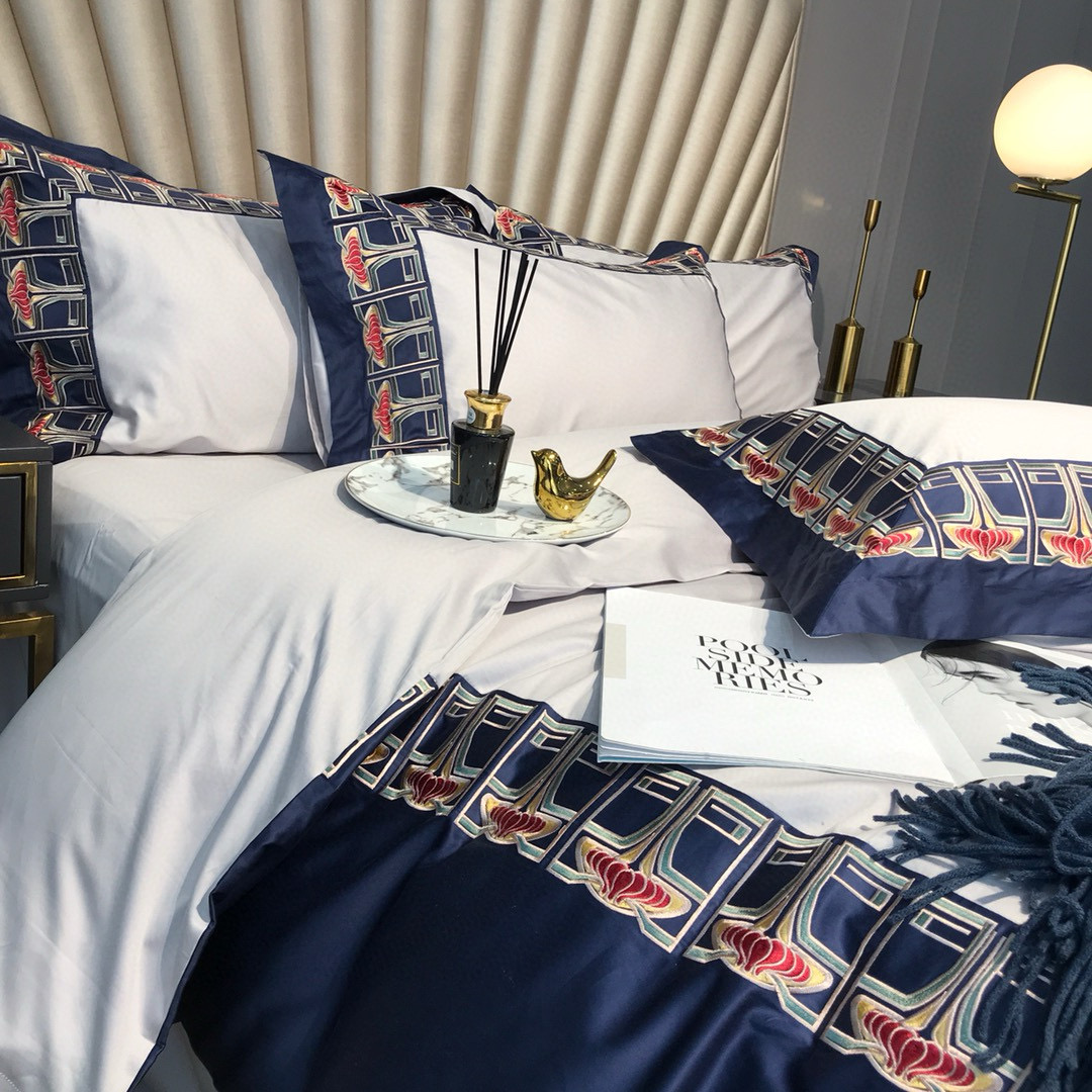 100 thread count Egyptian cotton heavyweight embroidered duvet cover white flat sheet 4pcs bedding set