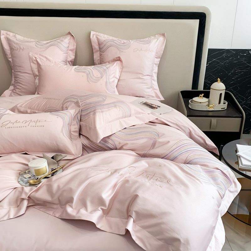 100S Australian Cotton Home Textile Pink Embroidery Quilt Comforter Cover Double Pillowcases Bedding Set
