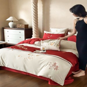 100S long staple cotton embroidery duvet cover bed sheets red bedding set