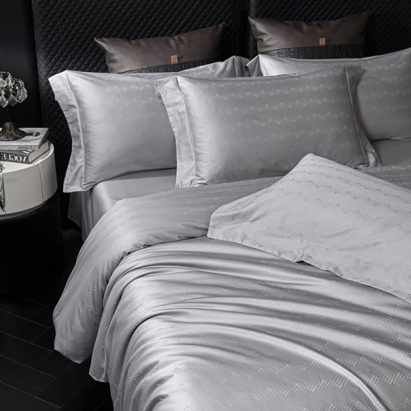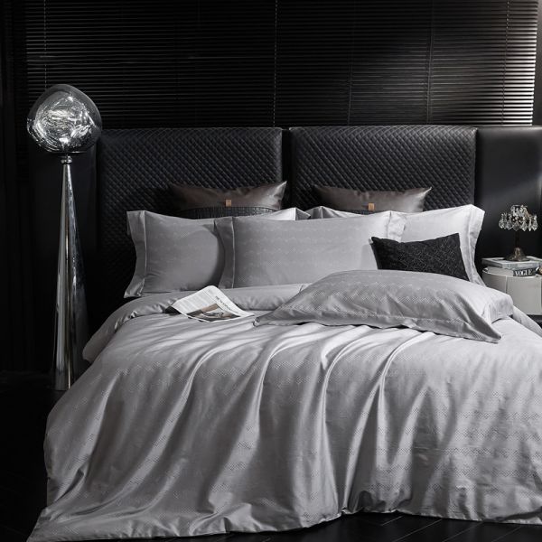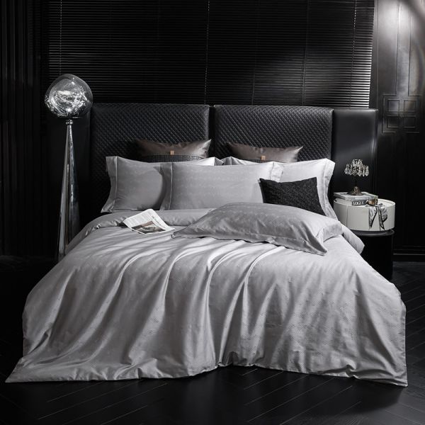 100S Long Staple Cotton Silver Jacquard Quilt Cover Light Luxury 4PCS Bed Sheets Bedding Set