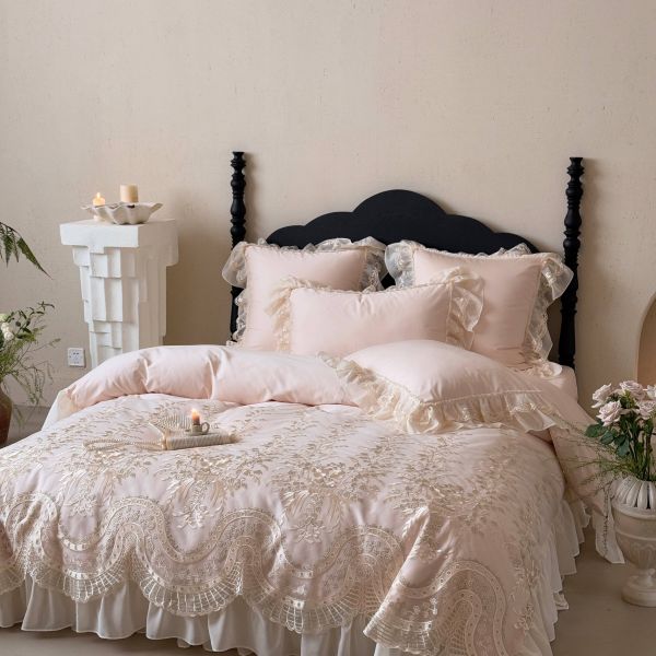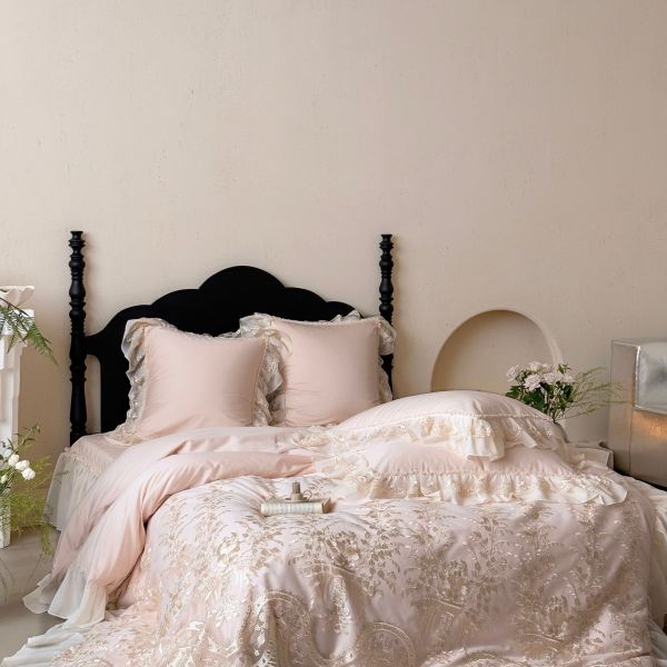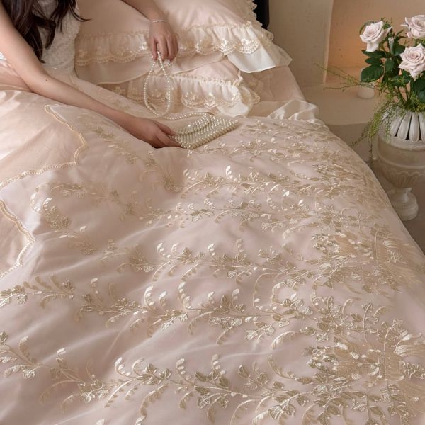 140S Long Staple Cotton Pink Embroidery Quilt Cover 4PCS Bedding Set