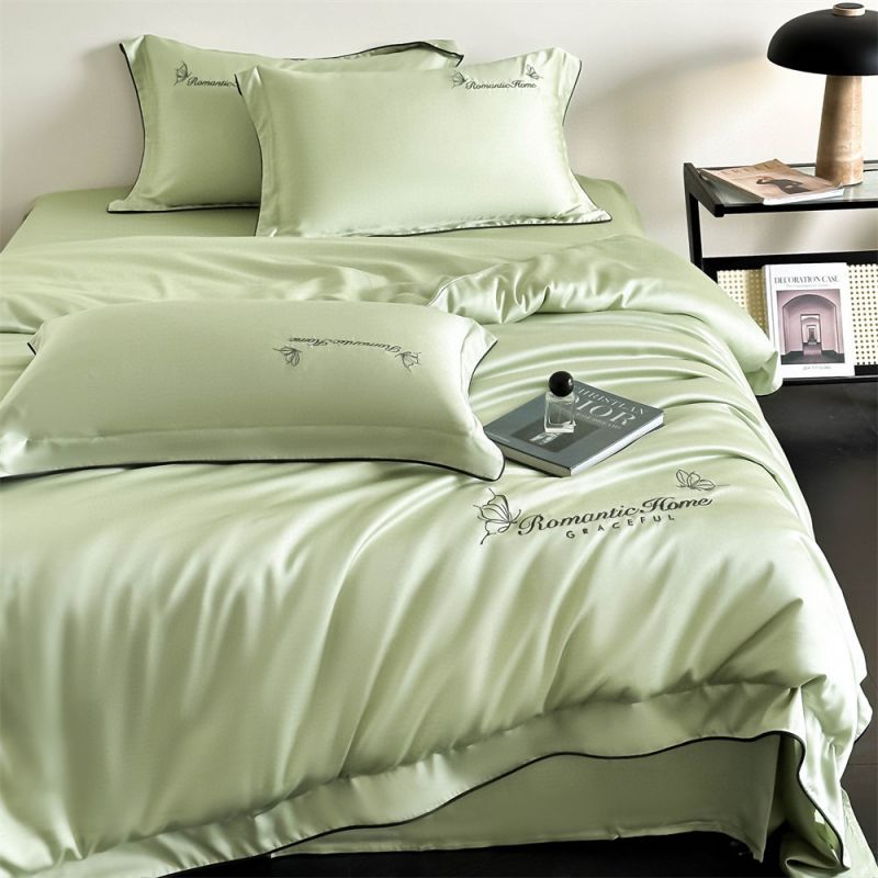2025 New Lyocell Duvet Quilt Comforter Cover Light Green Bed Sheet sabanas Embroidery Bedding Set