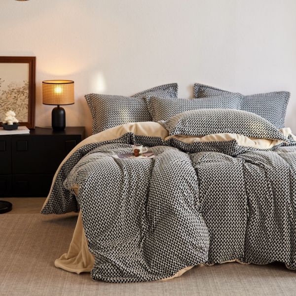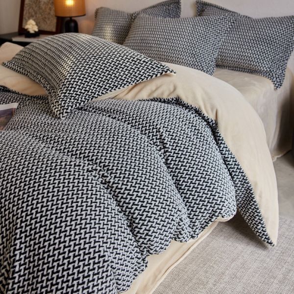 The product is 4pcs bedding set. It’s made of milk velvet fabric by default. We support doing ODM/OEM. We can provide fabrics both solid colors and printing(from 75-150gsm)/the weight of fillings ranges from 150-500gsm.Both of which can be customized according to customer’s needs.