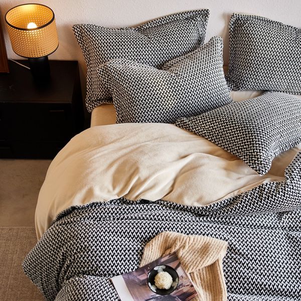 250g full matte milk velvet jacquard print queen king size four-piece bedding set