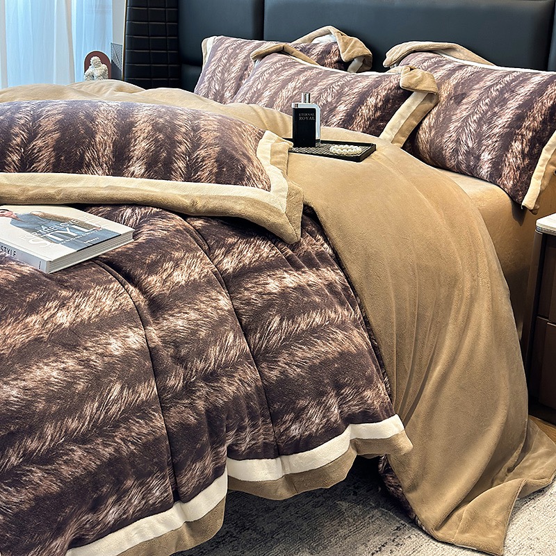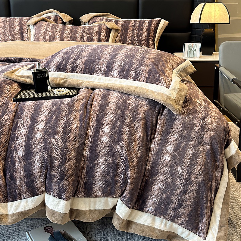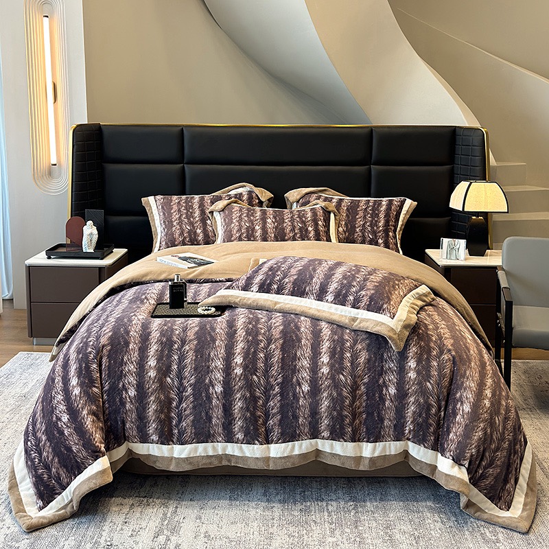 The product is 4pcs bedding set. It’s made of milk velvet fabric by default. We support doing ODM/OEM. We can provide fabrics both solid colors and printing(from 75-150gsm)/the weight of fillings ranges from 150-500gsm.Both of which can be customized according to customer’s needs.