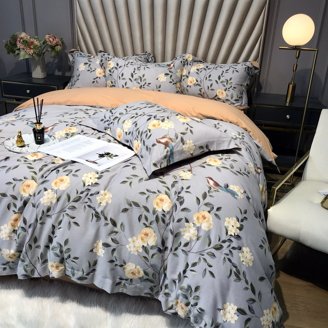 60S Double-strand Satin Brushed Digital Printed Quilt Cover Soft Bed Sheets Floral Bedding Set