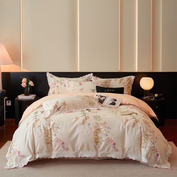 The product is 4pcs bedding set. It’s made of cotton fabric by default. We support doing ODM/OEM. We can provide fabrics both solid colors and printing(from 75-150gsm)/the weight of fillings ranges from 150-500gsm.Both of which can be customized according to customer’s needs.