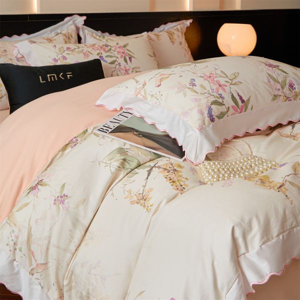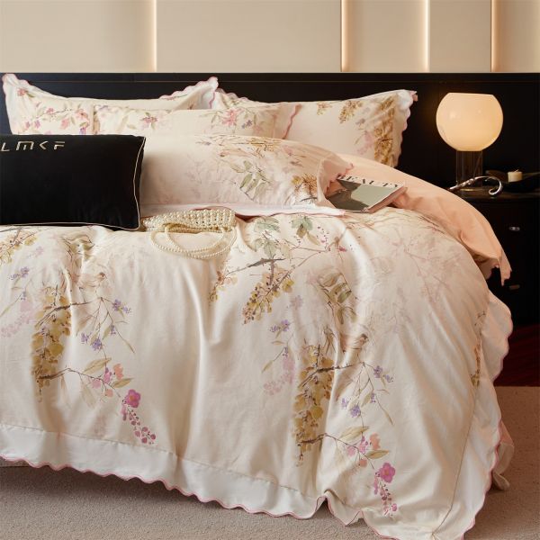 A Class 100S Cotton Brushed Digital Printing Duvet Comforter Cover Light Pink Floral Plant Bedding Set