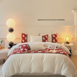 The product is 4pcs bedding set. It’s made of milk velvet fabric by default. We support doing ODM/OEM. We can provide fabrics both solid colors and printing(from 75-150gsm)/the weight of fillings ranges from 150-500gsm.Both of which can be customized according to customer’s needs.