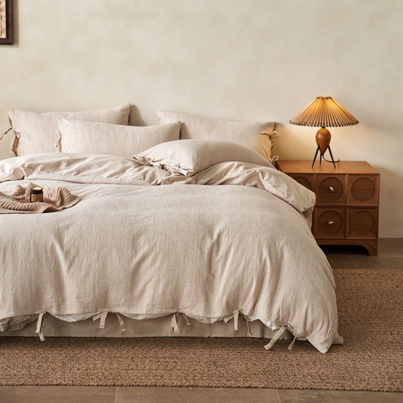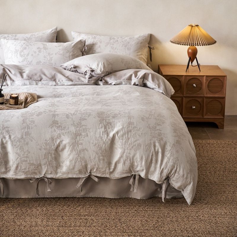 B&B Style Natural Cotton & Linen Jacquard Four-Piece Bed Set Quilt Cover Soft Bed Sheets 4PCS Bedding Set Wholesale