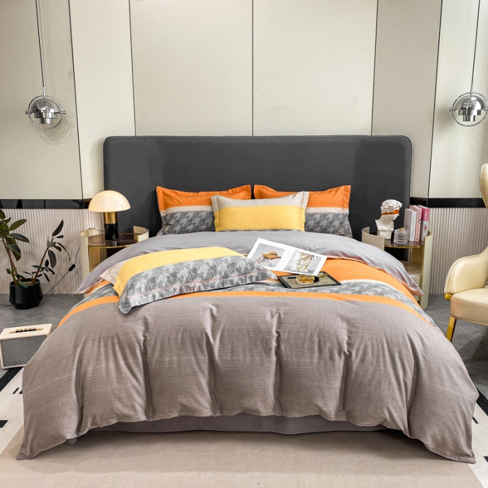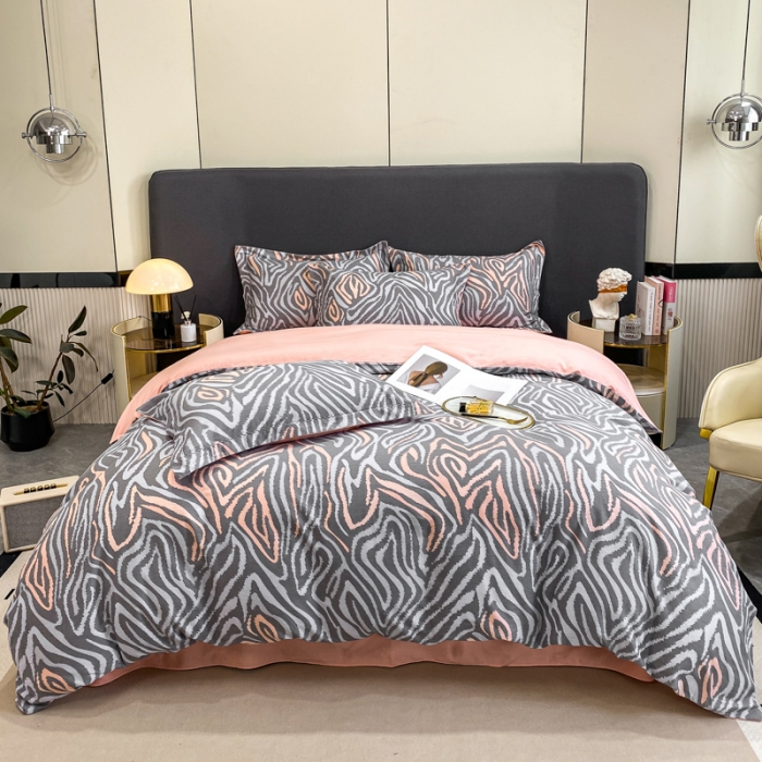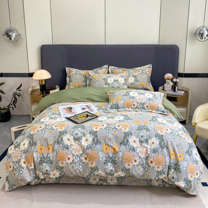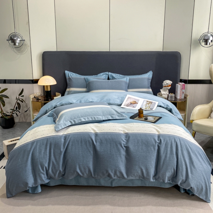 The product is 4pcs bedding set. It’s made of  cotton fabric by default. We support doing ODM/OEM. We can provide fabrics both solid colors and printing(from 75-150gsm)/the weight of fillings ranges from 150-500gsm.Both of which can be customized according to customer’s needs.