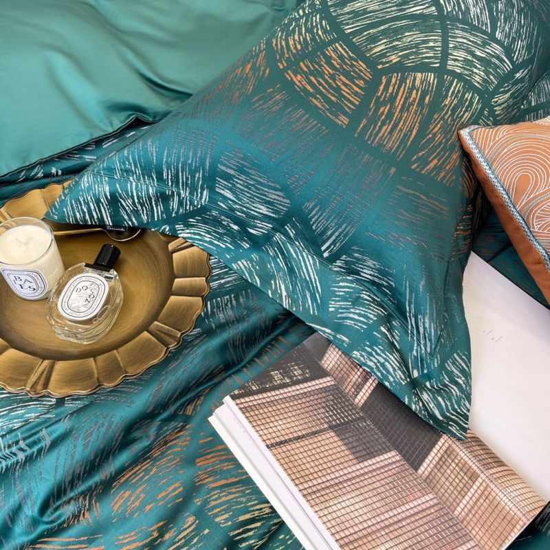 Emerald Green Yarn-Dyed Jacquard Duvet Cover 120s Egyptian Cotton Bed Sheets Luxury Home Textile Queen King Bed Linen 4PCS Bedding Set in Stock