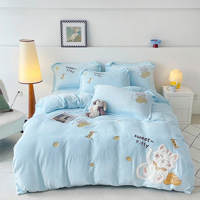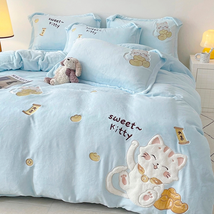 Exquisite and elegant cartoon appliqué embroidered milk plush four-piece set