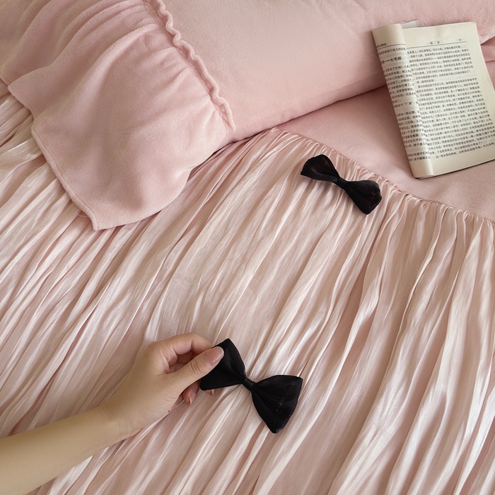 Exquisite pink pillowcase soft 200*230cm velvet quilt cover queen size hotel home textile milk velvet bedding set manufacturer