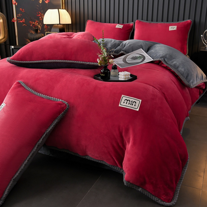 Exquisite Twill Edge Label Milk Fleece Four-Piece Bedding Set