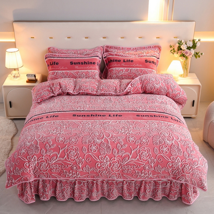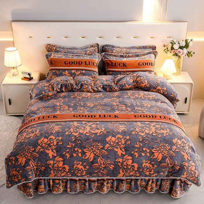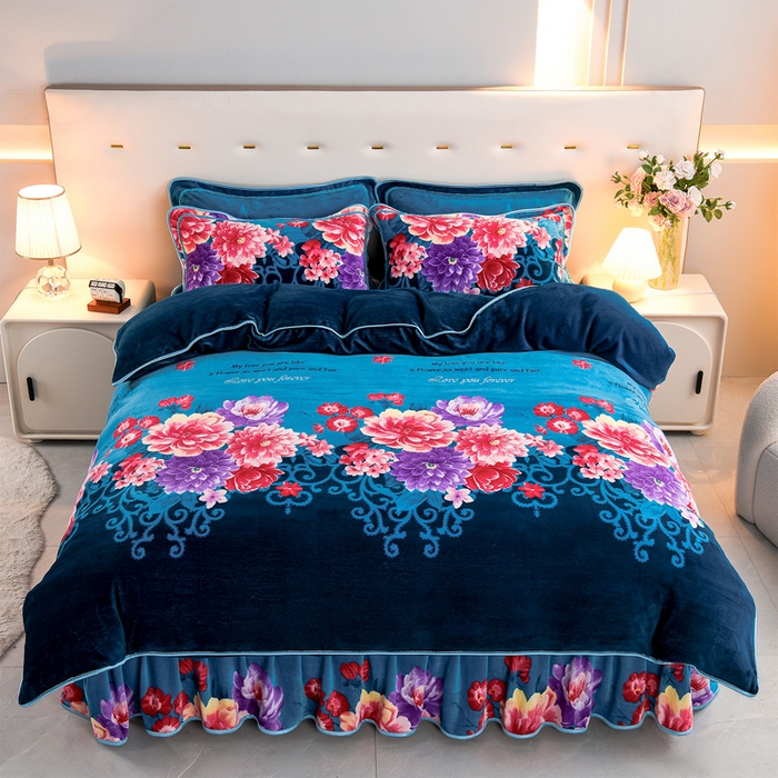 Extra Thick 8.5kg Milk Fleece and Mink Fleece Bed Skirt Set for Warmth