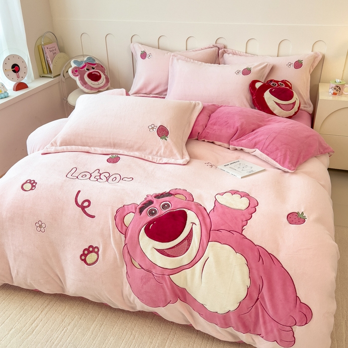 Gorgeous milk fleece plush applique embroidery four-piece warming set