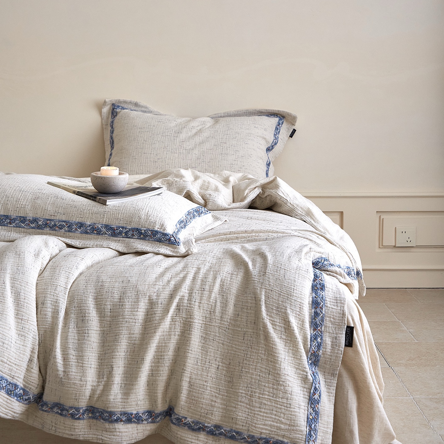 Grade a Home Textile Cotton Linen Yarn-Dyed Jacquard Duvet Cover Skin-Friendly Bed Sheets 4PCS French Linen Bedding Set for Homestay Home Wholesale