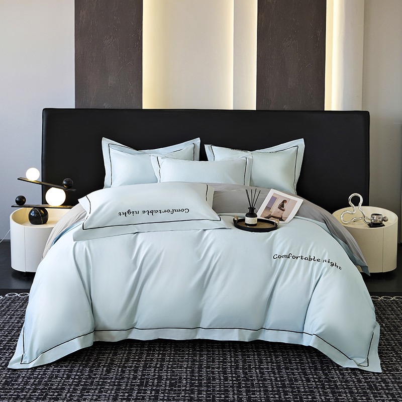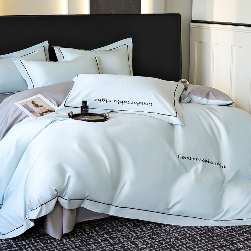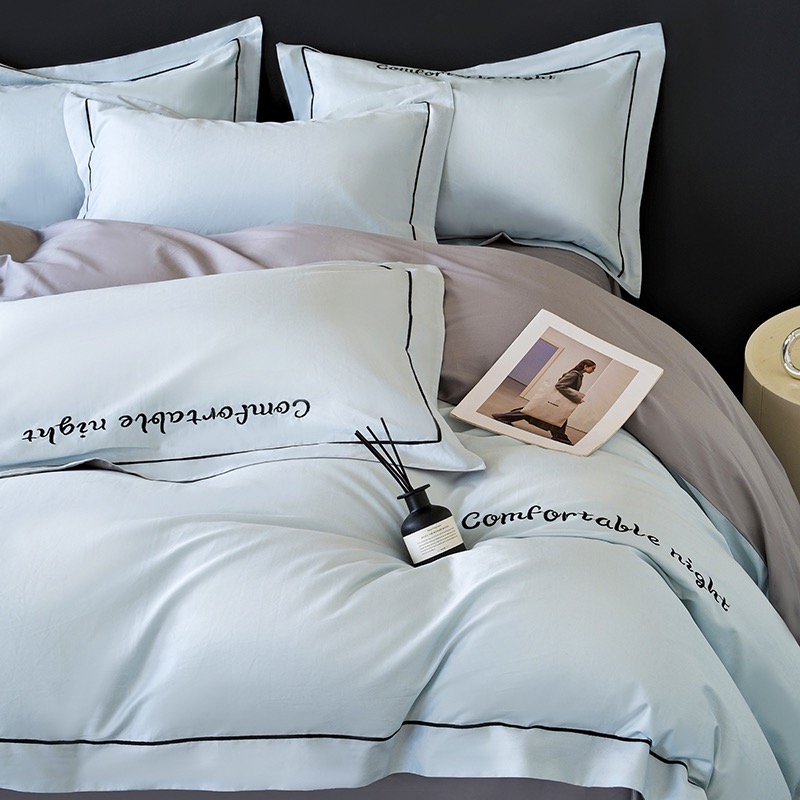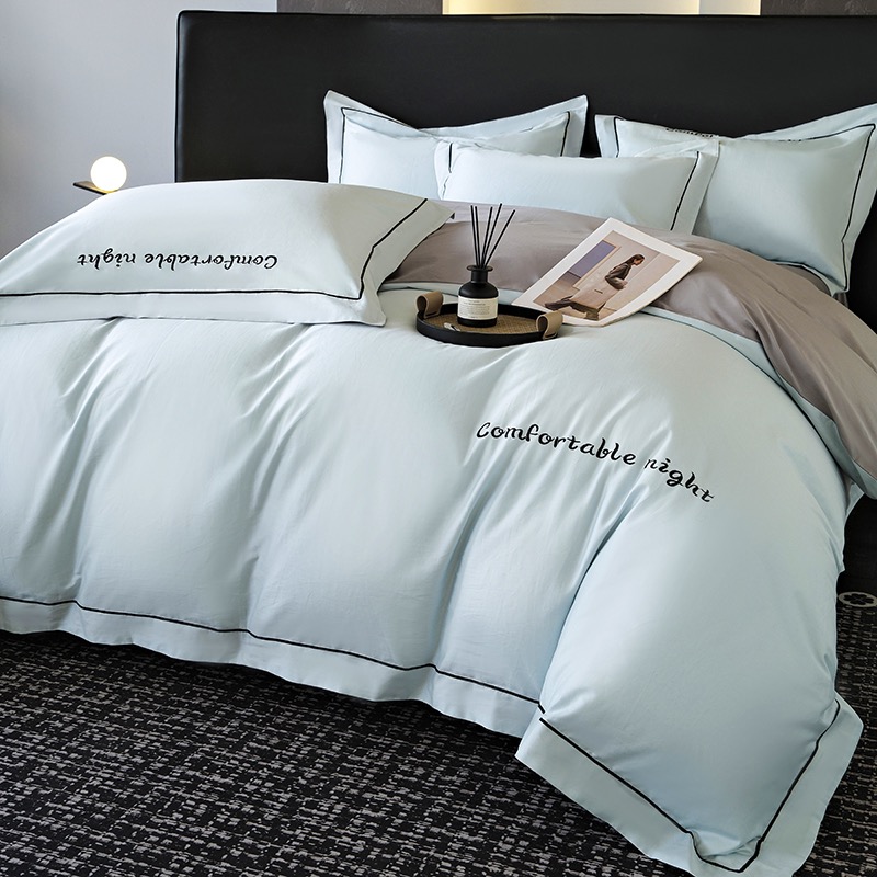Grade A Long Staple Cotton Home Textile Blue Duvet Cover Bed Sheet Light Luxury Embroidery Bedding Set