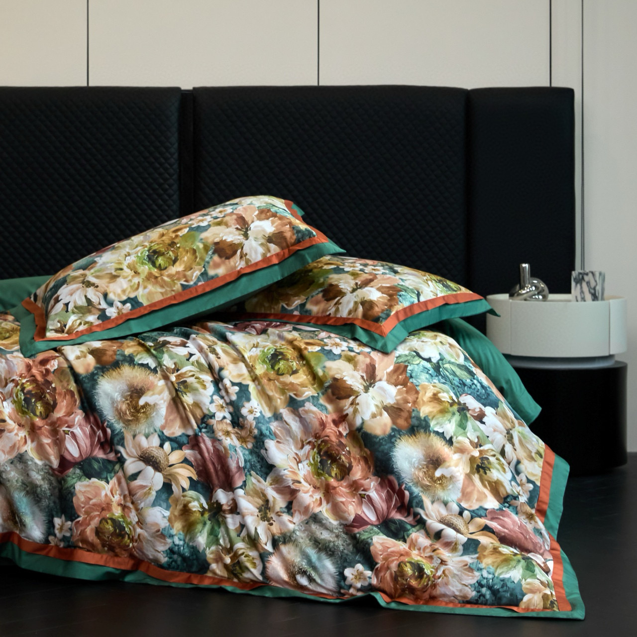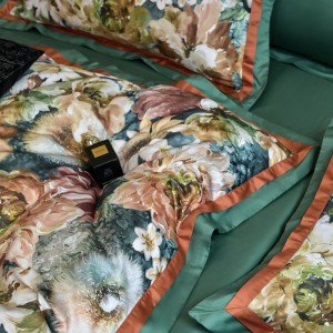 Green high grade 100% long-staple cotton home textile digital printing duvet cover 4 pcs bedding set