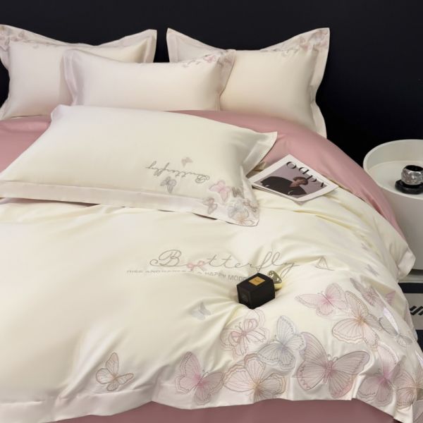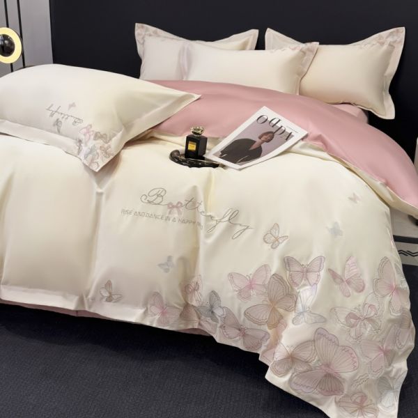 High Class Cotton Light Luxury 4PCS Bedding Set With Embroidery Duvet Cover Pillowcases Bed Sheets