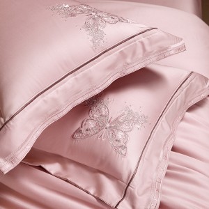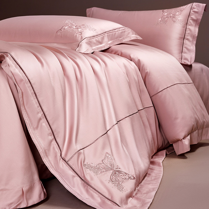 High-end designer home textile cotton embroidered quilt cover bed sheet pink bedding set
