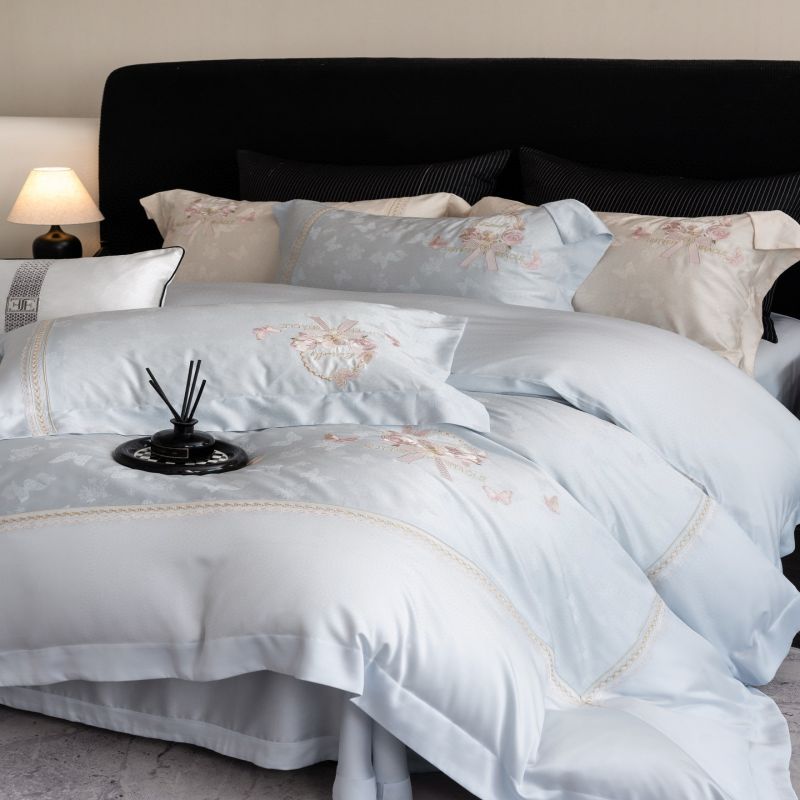 High Grade 100S Australian Cotton Jacquard Duvet Cover Double Pillowcases Soft Bed Sheet Baby Blue Bedding Set