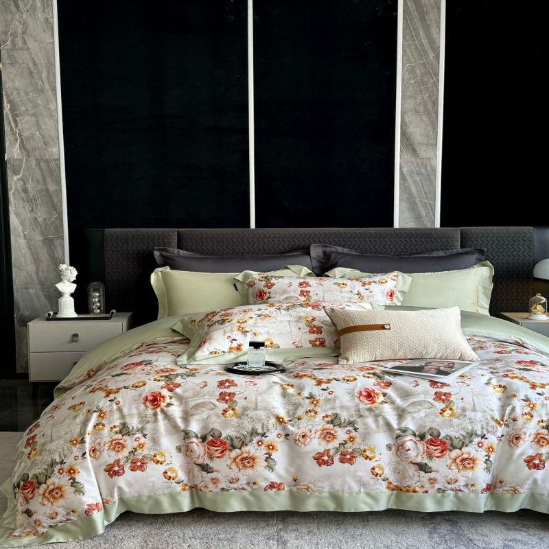 High Grade Floral Plant Digital Printing Duvet Quilt Comforter Cover Green Breathable Bed Sheets Light Luxury Long Staple Cotton Bedding Set