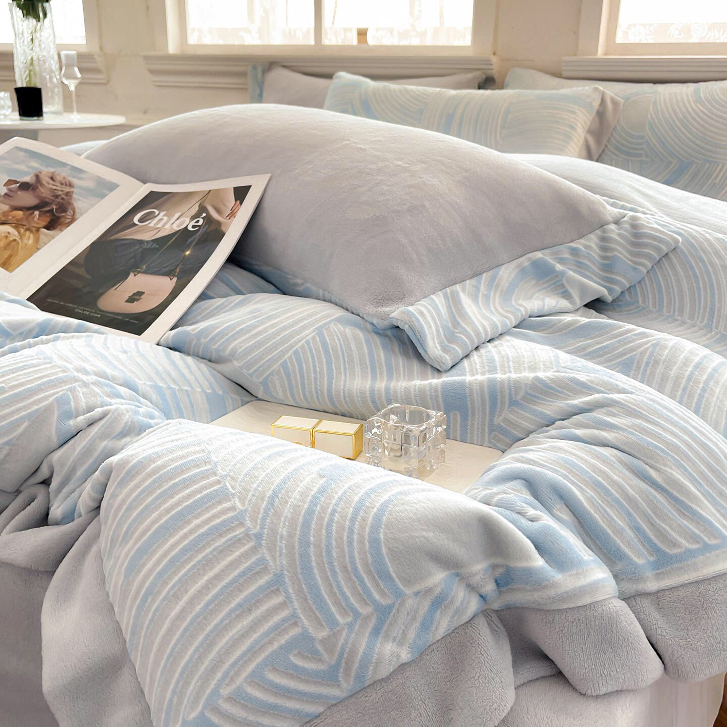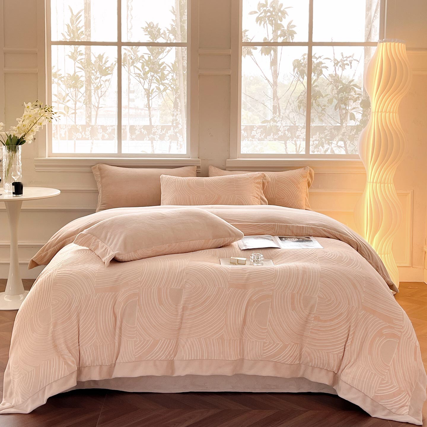 High gram weight beige milk fleece pillowcases fluffy 2/2.3m quilt comforter cover jacquard pillow shams 4-piece bedding set