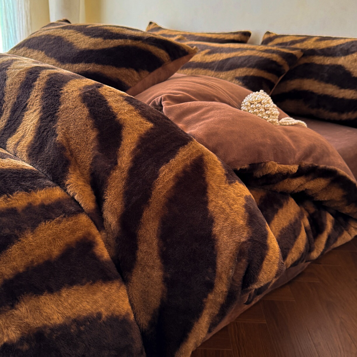 High gram weight brown printing 4pcs milk velvet comforter duvet bedding set wholesaler