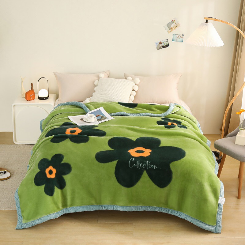 High gram weight green Raschel fleece fluffy 2/2.3m coverlets high-quality 1-piece blanket