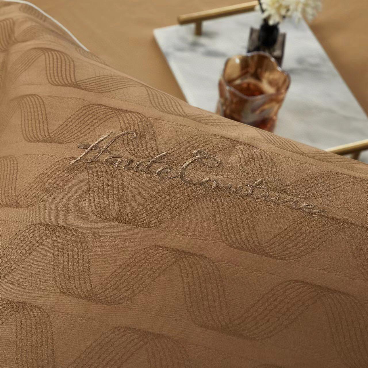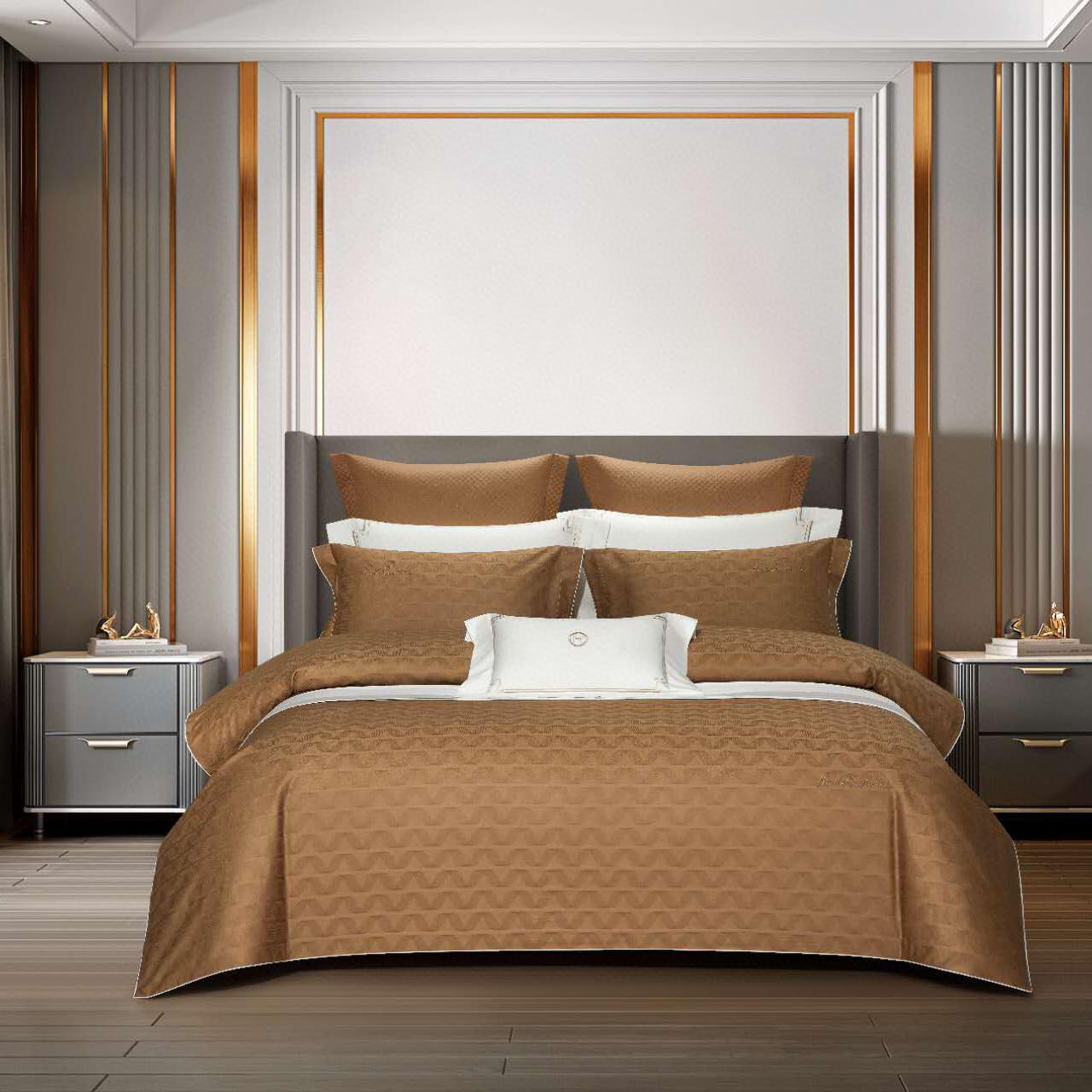 High Quality Brown Jacquard Home Hotel Textiles 100% Cotton Embroidery Comforter Duvet Cover Bedding Set Supplier