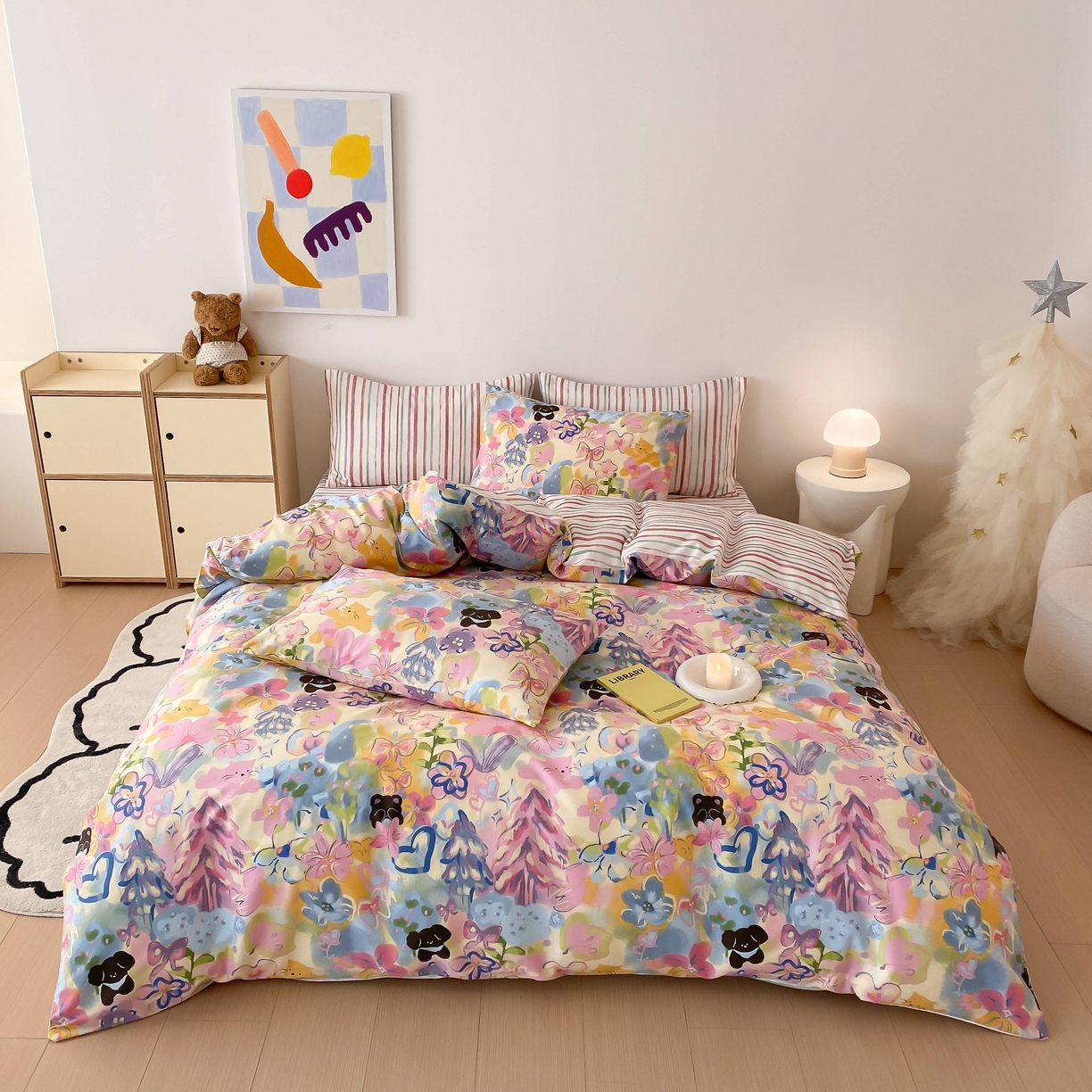 The product is 4pcs bedding set. It’s made of pure cotton fabric by default. We support doing ODM/OEM. We can provide fabrics both solid colors and printing(from 75-150gsm)/the weight of fillings ranges from 150-500gsm.Both of which can be customized according to customer’s needs.
