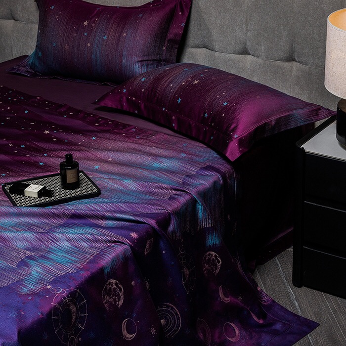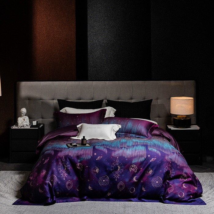 High quality purple 4pcs digital printing home hotel textiles 100s cotton duvet cover bedding set supplier