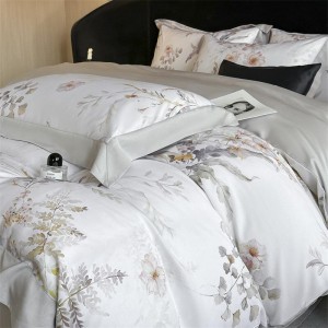 Hot Sale High Quality Lyocell Bed Sheet Flower Duvet Cover Printed Floral 4pcs White Bedding Set