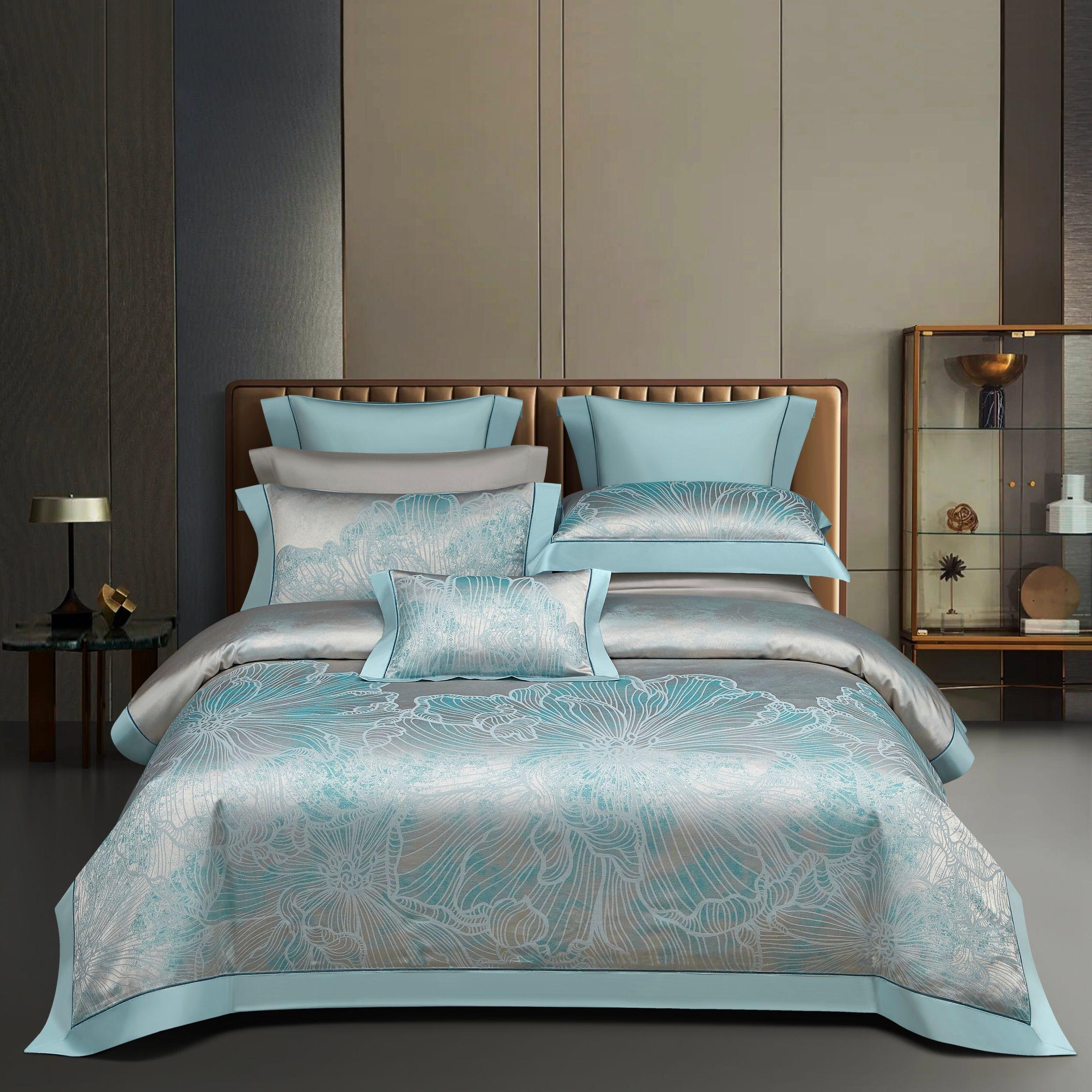 Hot-selling 4-pieces textile jacquard 2m/2.2m bedsheet flat sheets 1.8m blue cotton polyester quilt cover premium bedding set manufacture