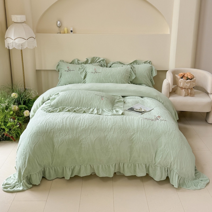 Icelandic Relief and Carving Style Milk Warm Velvet Pastel-colored Four-piece Bedding Set