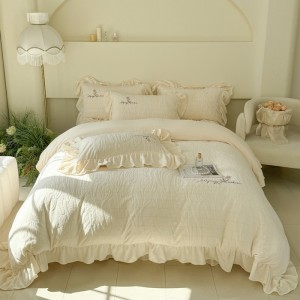 The product is 4pcs bedding set. It’s made of milk velvet fabric by default. We support doing ODM/OEM. We can provide fabrics both solid colors and printing(from 75-150gsm)/the weight of fillings ranges from 150-500gsm.Both of which can be customized according to customer’s needs.