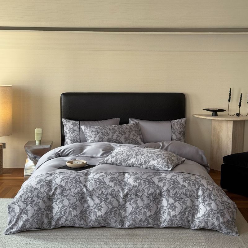 Light Luxury 60S Lyocell Flat Sheet Fitted Sheet Digital Printing Duvet Cover ODM/OEM Queen King Bed Sheet Bedding Set