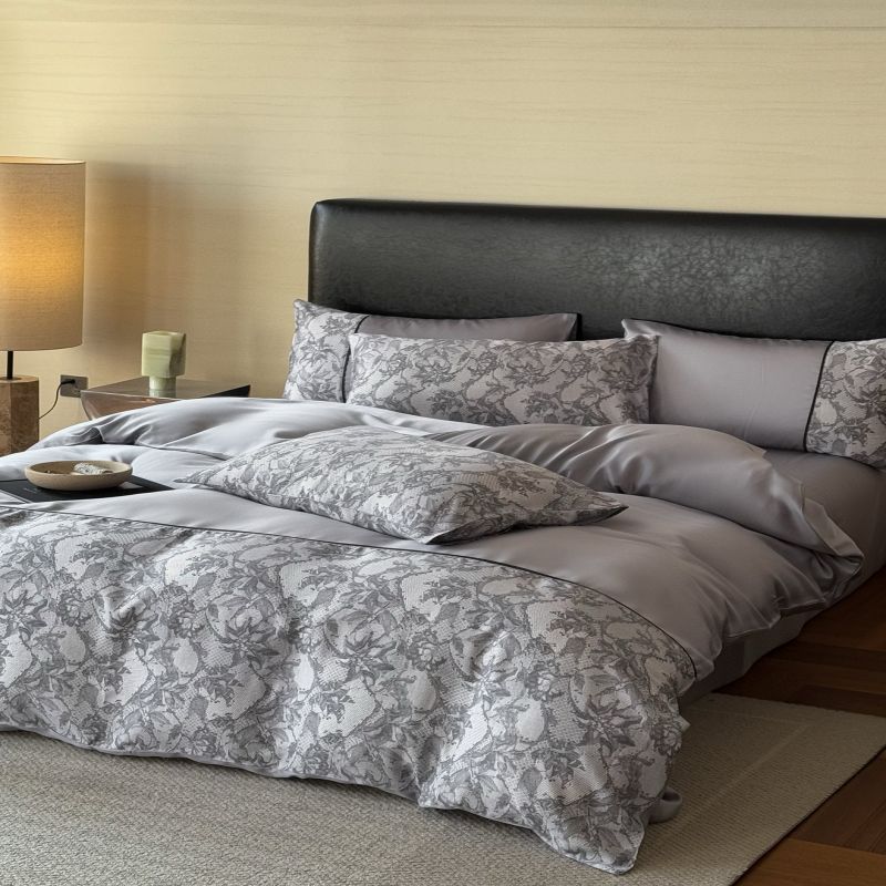 The product is 4pcs bedding set. It’s made of lyocell fabric by default. We support doing ODM/OEM. We can provide fabrics both solid colors and printing(from 75-150gsm)/the weight of fillings ranges from 150-500gsm.Both of which can be customized according to customer’s needs.