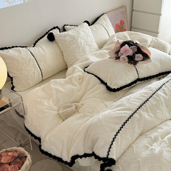 Light luxury rabbit plush high weight winter warm splicing kit thickened milk plush four-piece bedding set