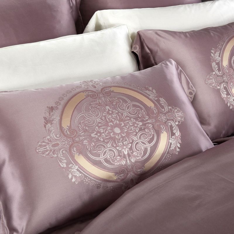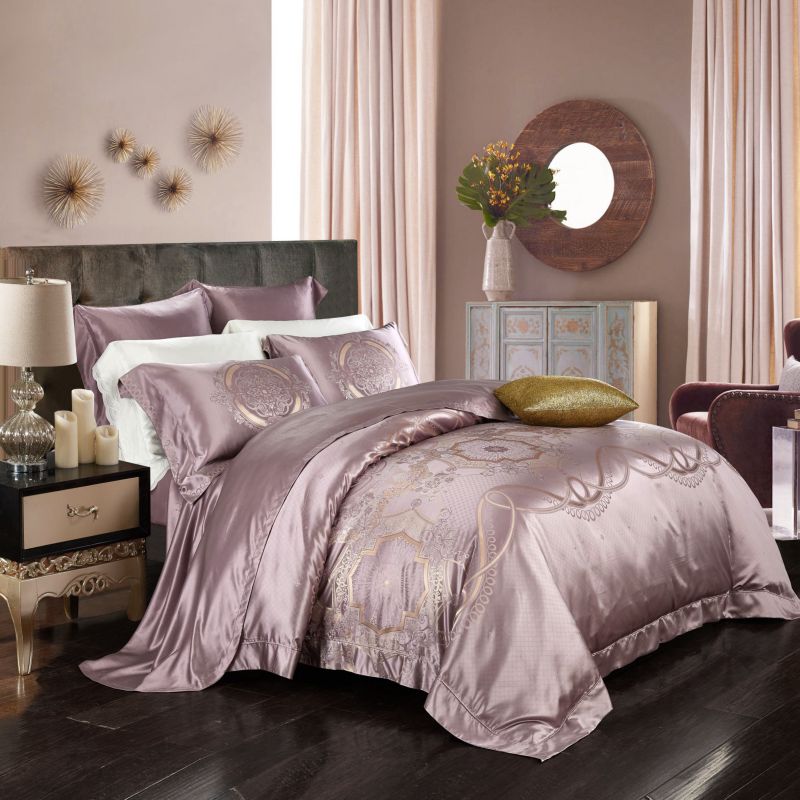 Luxury Mulberry Silk Home Textile Customized Pink Jacquard Bed Linen Flat Fitted Sheet Queen King Size Bedroom Guangdong Bedding Set Wholesale