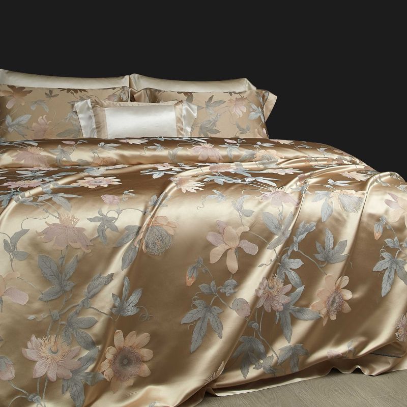 Luxury Natural Mulberry Silk Home Textile Gold Yarn-Dyed Jacquard Floral Duvet Cover Cozy Skin-Friendly Bed Sheets 4PCS Sabanas Bed Linen Bedding Set Wholesale
