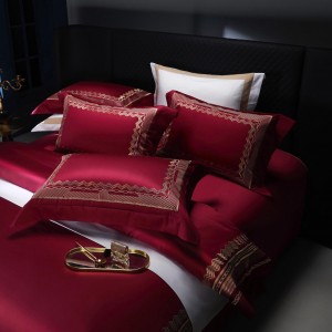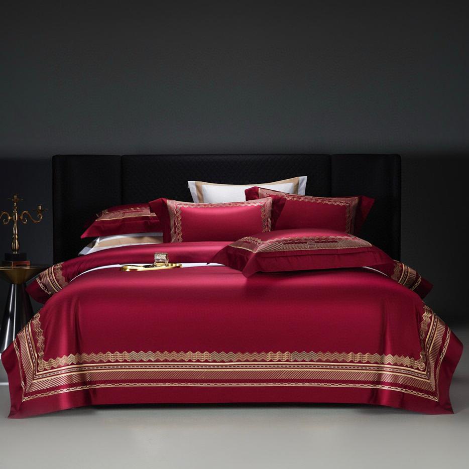 Luxury style printing home textile cotton bed linen red embroidery duvet quilt comforter cover bedding set wholesaler