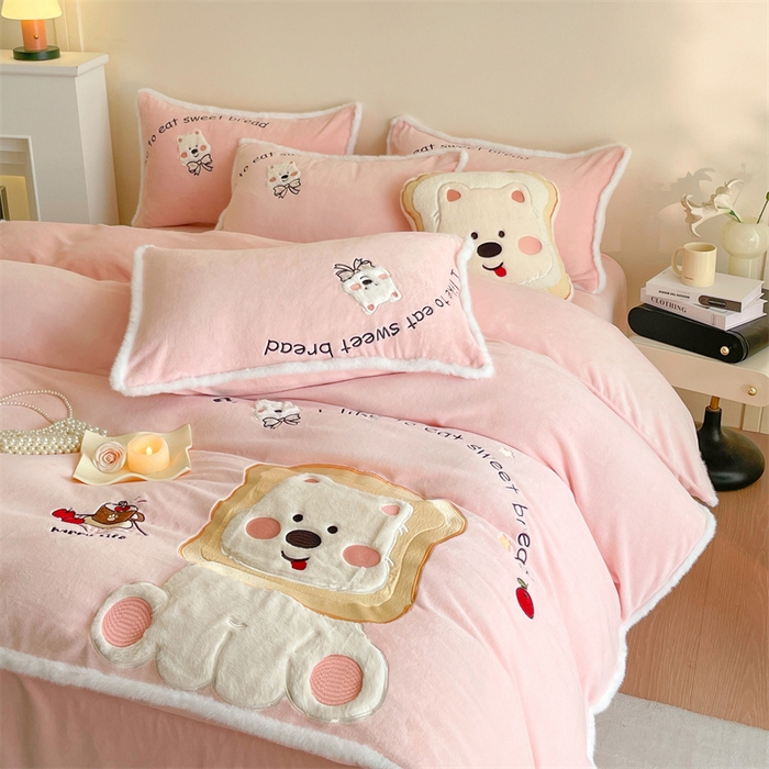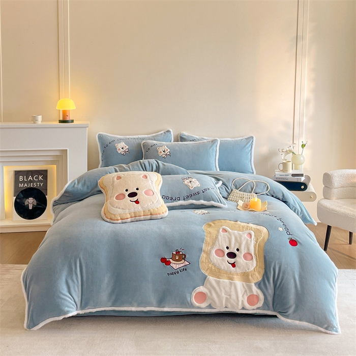 Matte embroidered appliqué milk fleece four-piece set