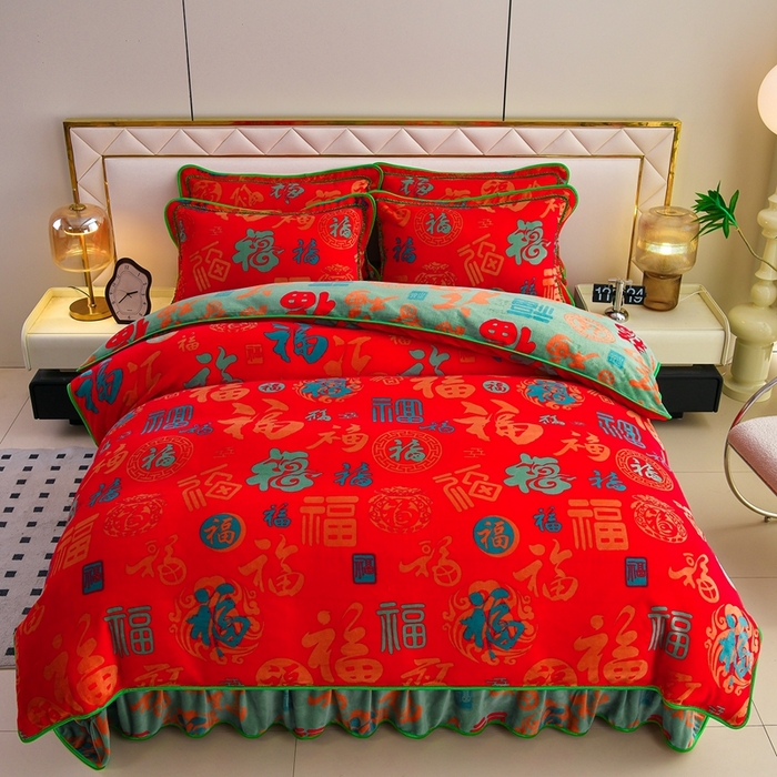 The product is 4pcs bedding set. It’s made of velvet fabric by default. We support doing ODM/OEM. We can provide fabrics both solid colors and printing(from 75-150gsm)/the weight of fillings ranges from 150-500gsm.Both of which can be customized according to customer’s needs.
