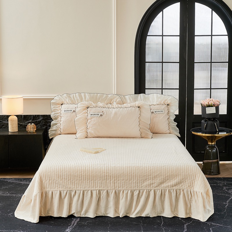 Milk Velvet Bed Cover Bed Sheets Double Pillowcases Lace Edge 4PCS White Bedspread Bedding Set